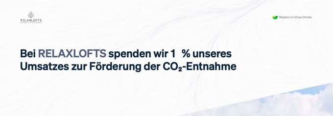 RELAXLOFTS ist Mitglied von Stripe Climate, einem Zusammenschluss von Unternehmen zur Förderung der CO₂-Entnahme